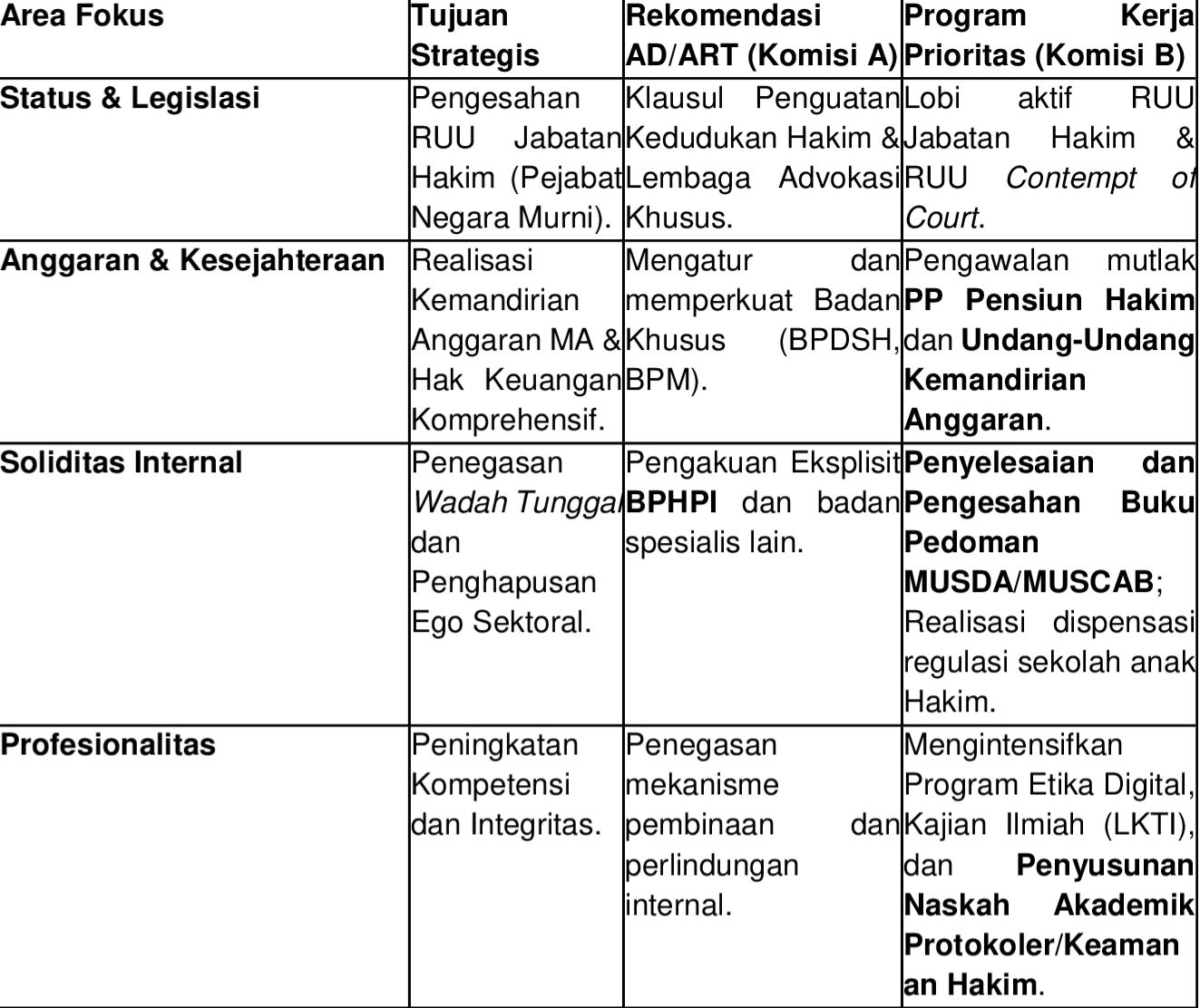 Setelah melalui perjuangan panjang kepengurusan 2022–2025, penulis melihat ada empat pilar agenda kritis yang wajib diselesaikan oleh kepemimpinan IKAHI periode berikutnya demi kejayaan Korps Hakim.