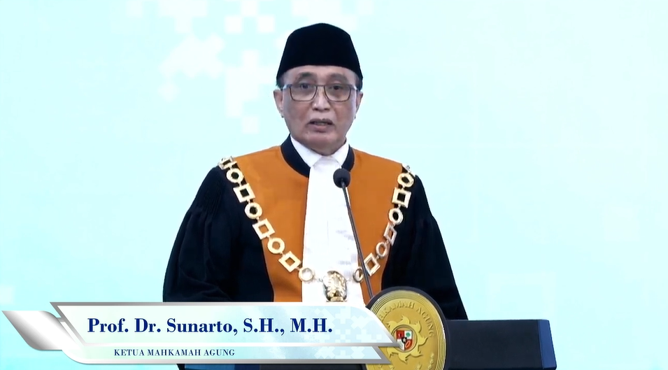 Ketua Mahkamah Agung, Prof. Sunarto dalam laporannya menyampaikan capaian kinerja, tantangan, dan serta inovasi yang telah dilakukan sepanjang tahun 2025.