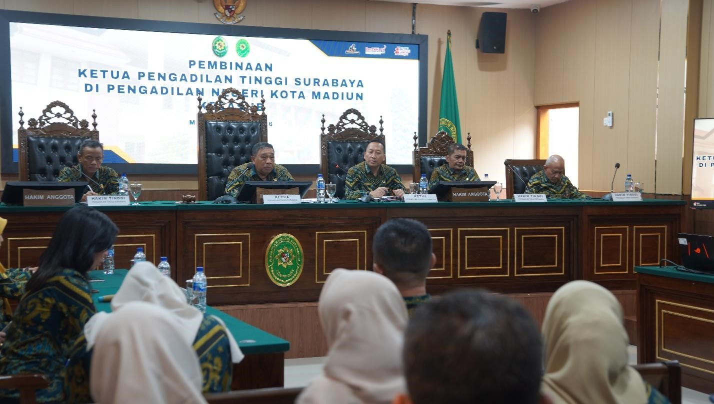 MARINews, Jawa Timur – Dalam rangkaian kegiatannya meresmikan Gedung Mess dan Arsip (Cakra Mageti) di Magetan, Ketua Pengadilan Tinggi (PT) Surabaya, Sujatmiko melakukan pembinaan di Pengadilan Negeri (PN) Magetan dan Pengadilan Negeri (PN) Madiun (1-2/04).