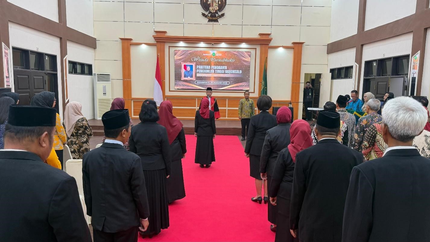 Gorontalo - Rabu, 28 Januari 2026. Ruang sidang Pengadilan Tinggi Gorontalo pagi itu terasa berbeda. Bukan karena perkara yang akan diputus, melainkan karena sebuah perjalanan panjang pengabdian akan ditutup dengan khidmat. Langkah Yang Mulia Ketua Pengadilan Tinggi Gorontalo Bapak Dr. Yapi, S.H., M.H., memasuki ruang sidang menjadi penanda dimulainya acara Purnabakti bagi dua Srikandi yang selama ini dikenal teguh, bersahaja, dan berintegritas dalam menegakkan keadilan, yakni Hakim Tinggi Gorontalo Ibu Halimah Pontoh, S.H., M.H., dan Ibu Ony S. Amai, S.H., M.H., selaku Panitera Pengganti.