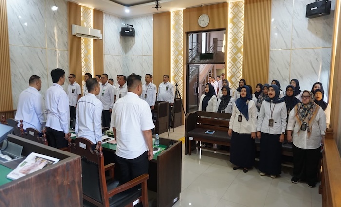 Seluruh aparatur Pengadilan Negeri Karawang, mulai dari para hakim, pejabat struktural, ASN hingga PPNPN, mengikuti kegiatan yang diawali dengan pre-test singkat.