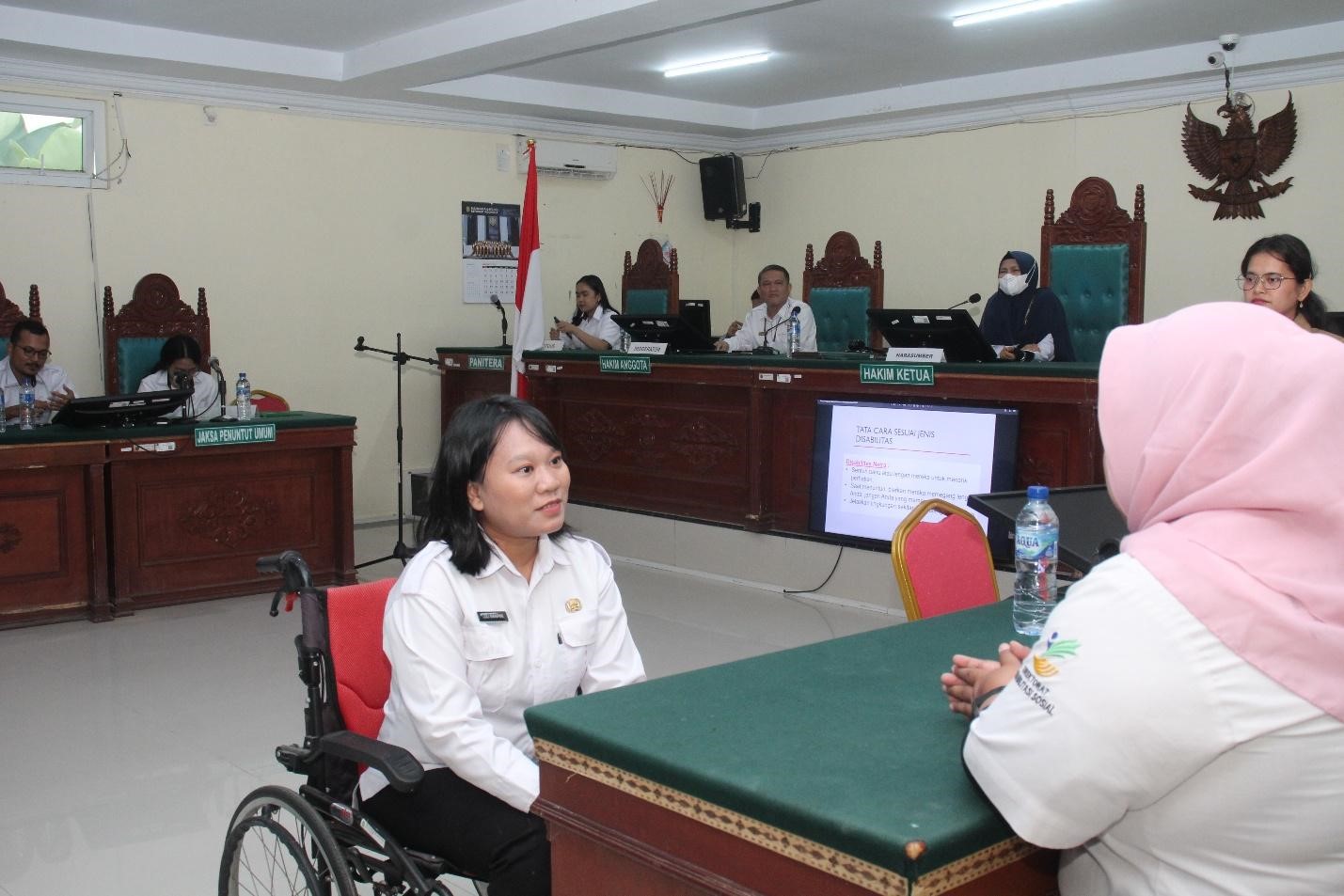 Kegiatan diawali dengan Sosialisasi Surat Keputusan Direktur Jenderal Badan Peradilan Umum Nomor 1692/DJU/SK/PS.00/12/2020 serta Buku Saku Pedoman Etika Berinteraksi dengan Penyandang Disabilitas, sebagai upaya meningkatkan pemahaman aparatur pengadilan dalam memberikan pelayanan yang ramah, setara, dan berkeadilan bagi penyandang disabilitas.