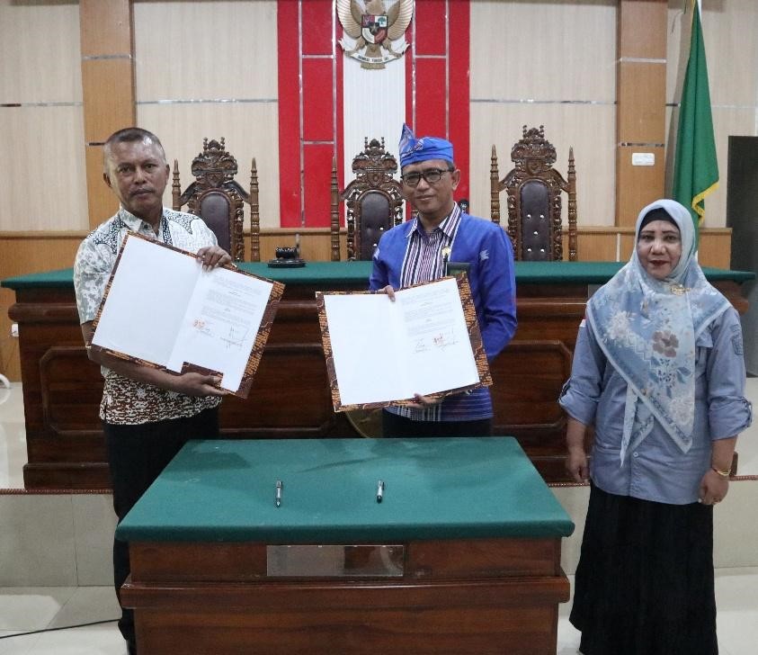 Buton – Pada Jumat, 27 Februari 2026, Pengadilan Negeri Pasarwajo melaksanakan penandatanganan MOU dengan SLBN 1 Bau Bau dan SLBN 2 Bau Bau sebagai langkah konkret dalam memperkuat penyediaan layanan bagi penyandang disabilitas yang beracara di pengadilan. Kegiatan yang dilaksanakan di kantor Pengadilan Negeri Pasarwajo tersebut dihadiri oleh seluruh aparatur pengadilan, Kepala SLBN 1 Bau Bau Masrato, S.Pd., serta Kepala SLBN 2 Bau Bau Munfiah. Kerja sama ini dirancang untuk memastikan tersedianya dukungan komunikasi dan pendampingan yang memadai, khususnya bagi penyandang disabilitas rungu dan wicara, sehingga proses peradilan dapat berlangsung secara adil, setara, dan bermartabat.