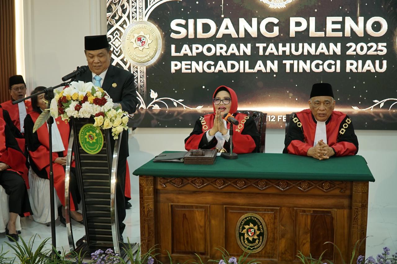 Pekanbaru – Pengadilan Tinggi Riau menyelenggarakan Sidang Pleno Laporan Tahunan 2025 pada Kamis, 12 Februari 2026, bertempat di Ruang Sidang Utama Prof. Dr. H.M. Syarifuddin, S.H., M.H., Pengadilan Tinggi Riau. Kegiatan ini menjadi wujud pertanggungjawaban kinerja Pengadilan Tinggi Riau beserta seluruh Pengadilan Negeri di wilayah hukumnya kepada publik, sebagai bagian dari penguatan tata kelola pemerintahan yang baik (good governance).