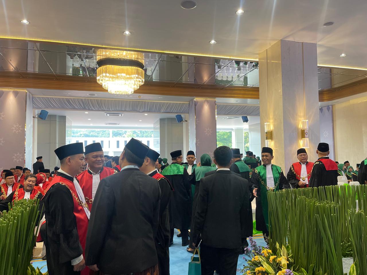 Para hakim yang hadir merupakan Ketua Pengadilan dari empat lingkungan peradilan, baik tingkat banding maupun tingkat pertama. Dengan wajah penuh semangat, mereka bersiap mengikuti rangkaian kegiatan Laporan Tahunan yang akan dipimpin langsung oleh Ketua Mahkamah Agung Republik Indonesia.