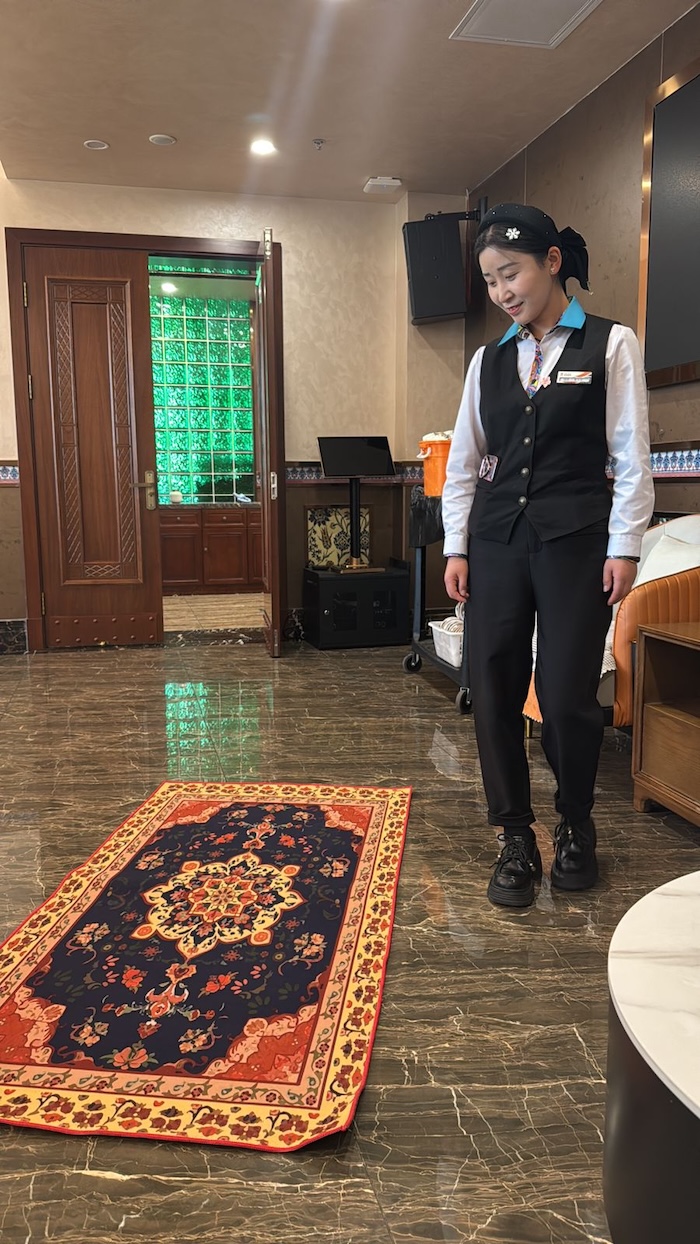 Salah seorang pelayan berkata dengan bahasa Inggris sederhana sambil tersenyum: